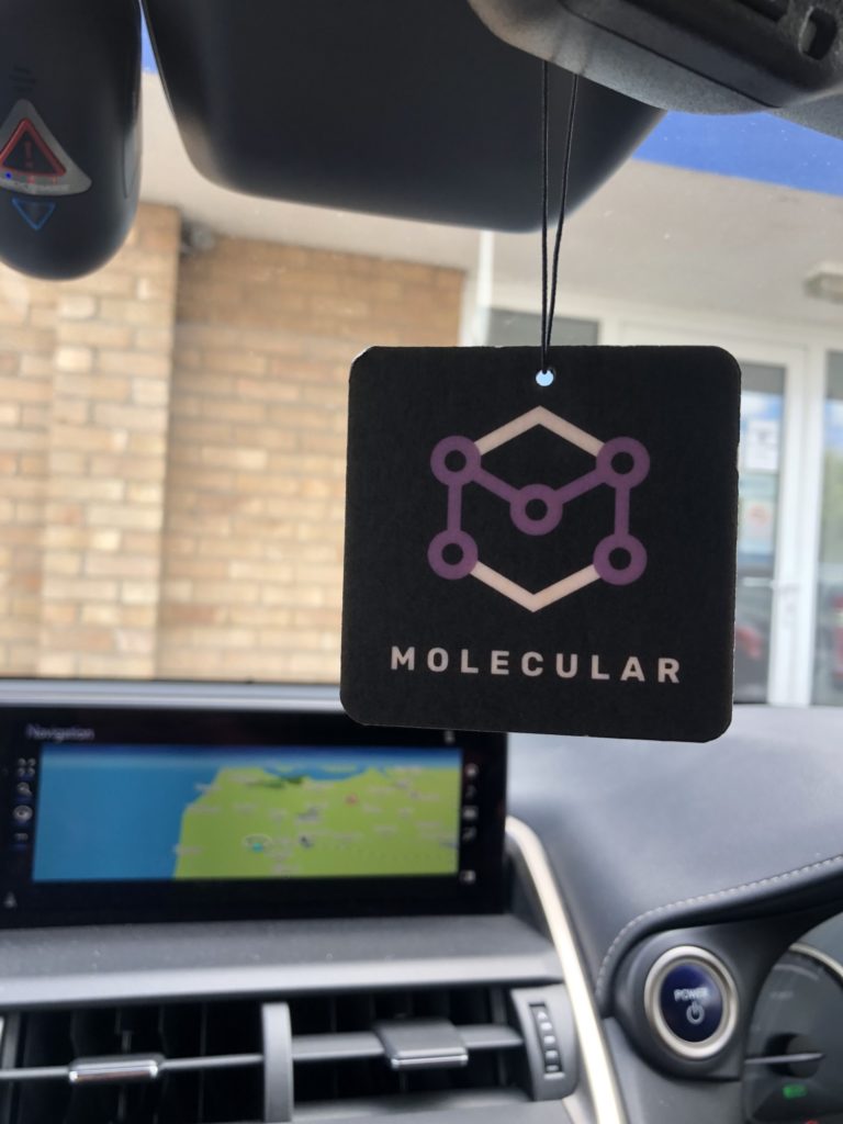 The Gravity air fresheners features our classic Molecular UK logo design on black background. The corners have rounded off for a more sleeker appearance.