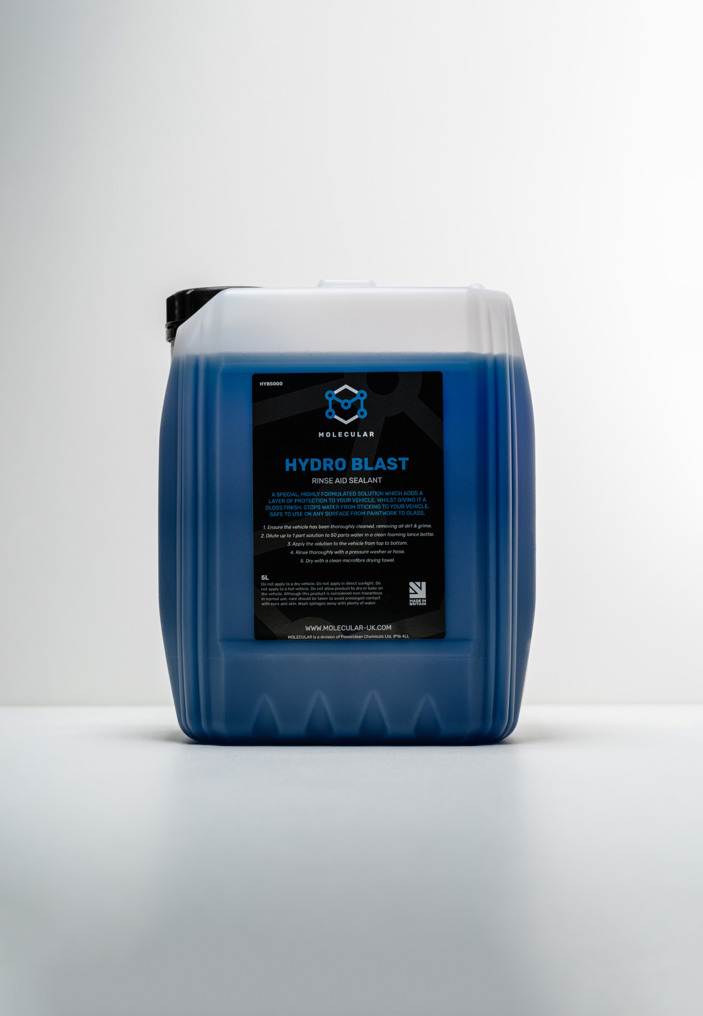 Not only does Hydro Blast rinse aid help the effectiveness of drying your vehicle, but it also helps to keep moisture out of your drying towel. So if you have more than one car to clean, you haven’t got to keep changing your towel so often. Once Hydro Blast has been applied you can expect light protection from rain and water for roughly 2 weeks. You can use this product in a foaming lance, in conjunction with your pressure washer or diluted in a low pressure spray. Suitable for professional car washing, valeting, and detailing, or personal use. Hydro Blast will also help maintain and improve gloss.