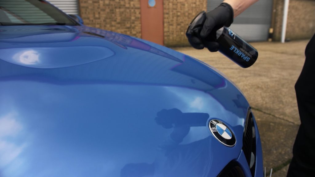 - Apply a small amount of Sparkle detail spray onto a small section or body panel at a time. Do not allow to dry.