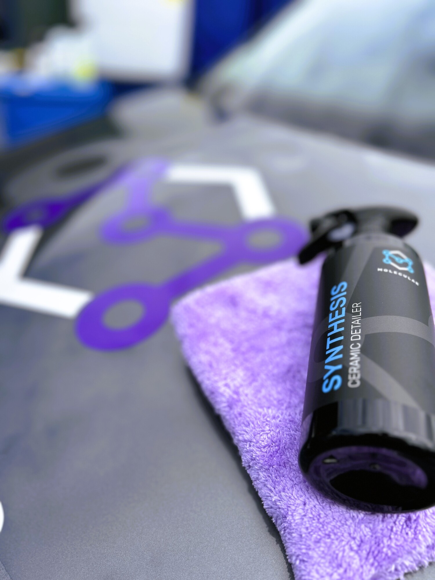 Synthesis is a ceramic detail spray that is extremely easy to use. Enhances gloss and improves durability of current protection such as coatings, sealants, waxes and polishes. Use as a ceramic booster. Can be used on both wet or dry vehicles.
